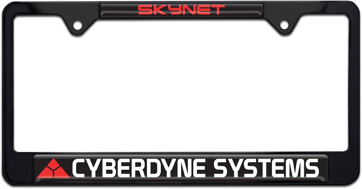 Elevate your vehicle’s style with this Terminator "I'll Be Back" license plate frame by Elektroplate. This officially licensed frame transforms your car into a tribute to the iconic movie legend with its striking graphics and sleek black powder coated finish. Unlike cheap plastic alternatives, this high-quality all-metal frame is built to endure the elements, ensuring it remains looking brand new for years without chipping or fading. The frame features graphics with full-color UV-protected domed inserts, all meticulously made in the USA. Its unique and durable design makes it a standout accessory for movie enthusiasts, while its elegant retail packaging makes it an excellent gift choice. Showcase your thriller style and make a bold statement wherever you drive with this premium license plate frame. This open corner, non-blocking tag holder frame legally displays license plate registration tags and stickers for all 50 states. Designed to fit 12" x 6" standard license plates.